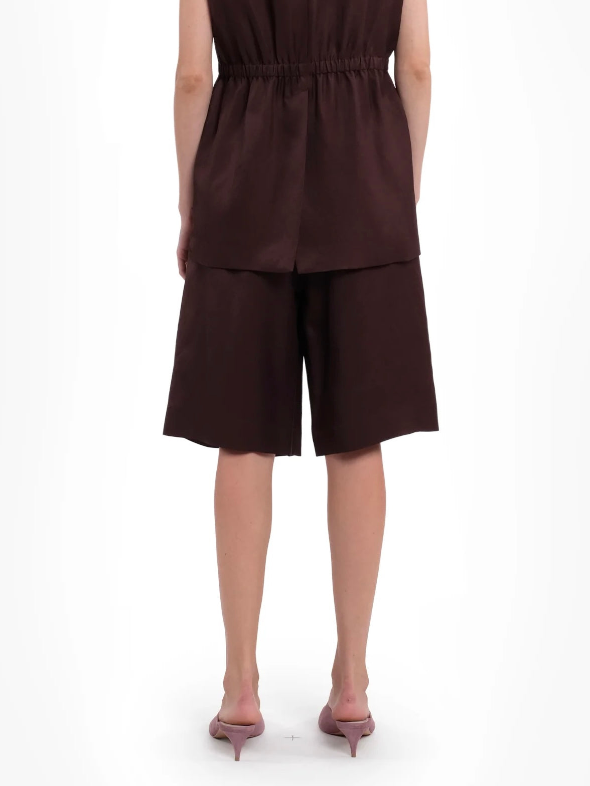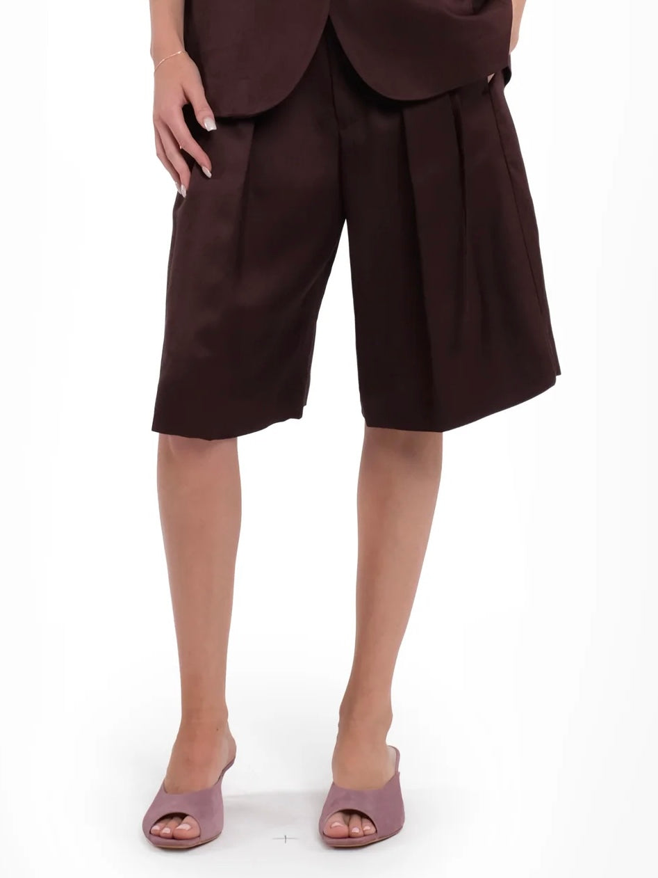Bermuda nel color prugna, con cintura rimovibile in vita, con tasche laterali.