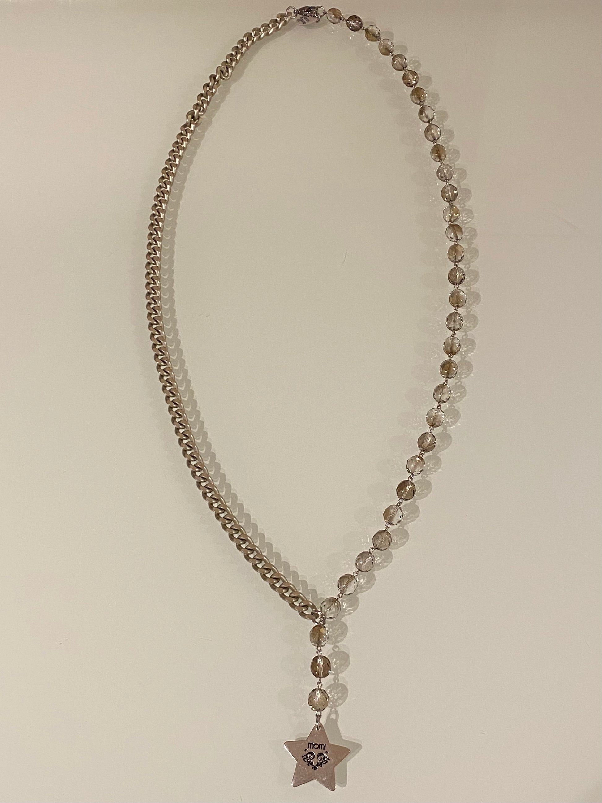 Collana realizzata a mano nel colore argento, con cristalli nel colore champagne e ciondolo a stella.